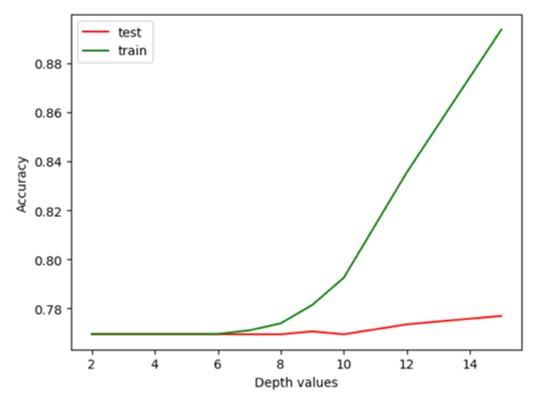 (b). Maximum depth: [2, 3, 4 … 15]