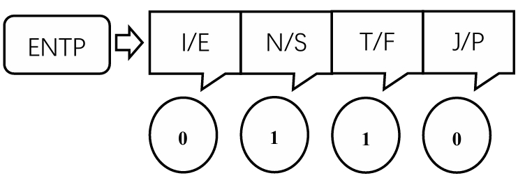 In this study, our target variable is the MBTI type. Since we need to predict each of the four dimensions separately, I have added four additional variables to the original data, each corresponding to one of the four dimensions.